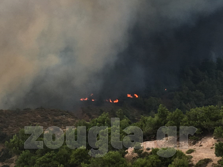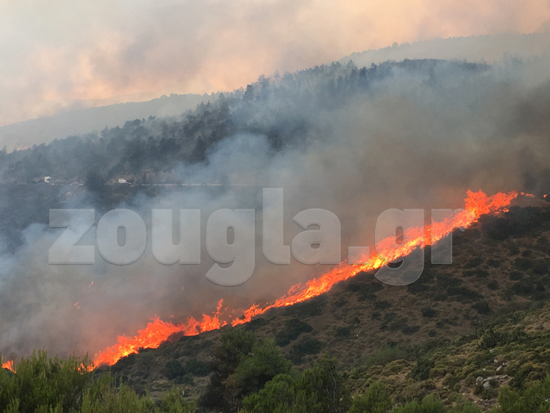 Μάχη με τις φλόγες δίνουν οι πυροσβέστες για να ελέγξουν τη μεγάλη πυρκαγιά στα Δερβενοχώρια, η οποία κατακαίει τα πάντα στο διάβα της, από το βράδυ του Σαββάτου, καταστρέφοντας ένα παρθένο πευκοδάσος.