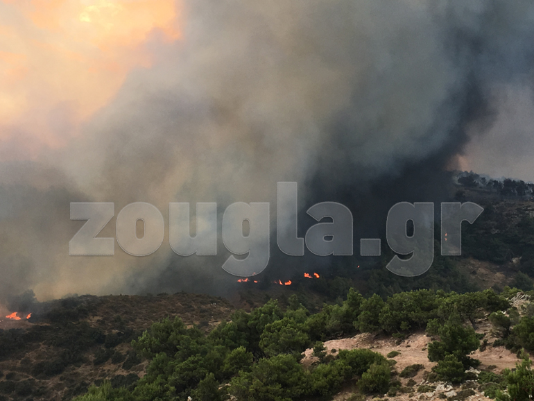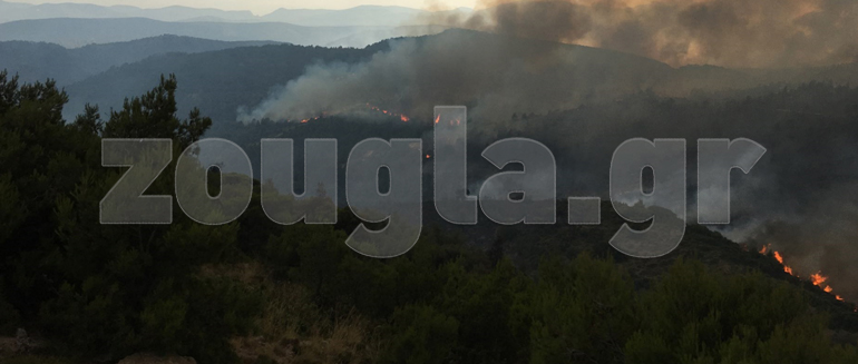 Από το πρωί συμμετέχουν και πάλι στο έργο της κατάσβεσης τα εναέρια μέσα, ενώ κατά τη διάρκεια της νύχτας ενισχύθηκαν και οι επίγειες δυνάμεις που επιχειρούν στην περιοχή.