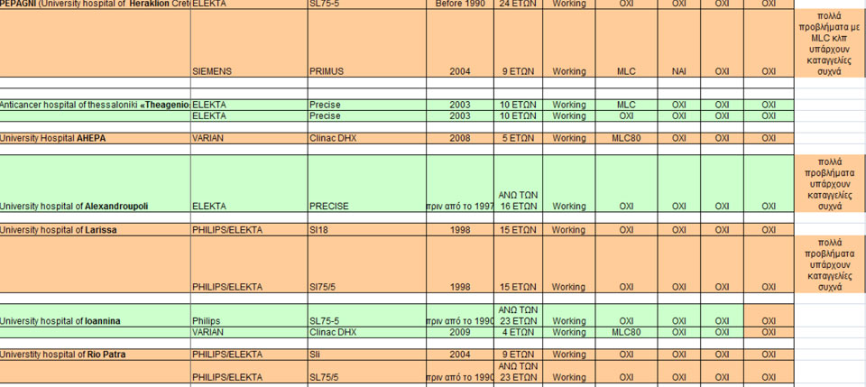 Παράδειγμα το Γενικό Νοσοκομείο Μεταξά, όπου εσωτερικό έγγραφο του πρώην διοικητή που έφερε στο φώς της δημοσιότητας η εκπομπή, αποτυπώνει την τραγική κατάσταση στην οποία βρίσκονται τα μηχανήματα ακτινοθεραπείας.