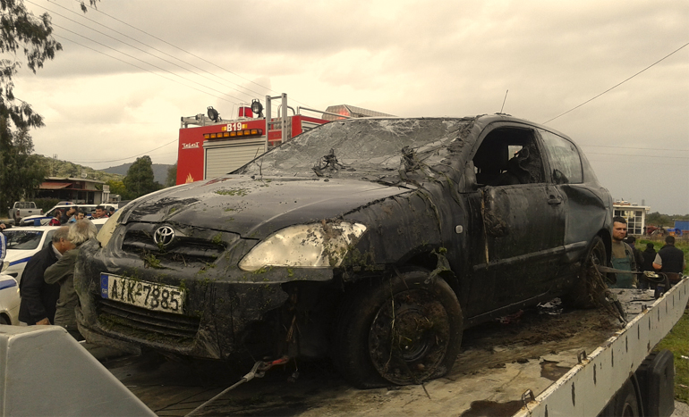 Το όχημα εντοπίστηκε λίγο πριν από τις 12.00 το μεσημέρι της Δευτέρας και στο εσωτερικό του βρέθηκαν νεκροί οι Βασίλης Γρατσάνης και Ιωάννης Κορδώσης