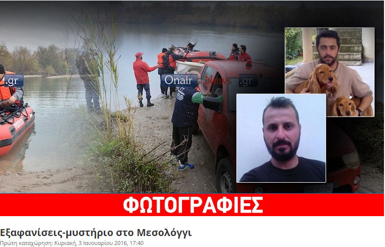 Τραγικές είναι οι εξελίξεις στην υπόθεση εξαφάνισης των δύο ανδρών τα ίχνη των οποίων χάθηκαν τα ξημερώματα της Πρωτοχρονιάς στην Αιτωλοακαρνανία.