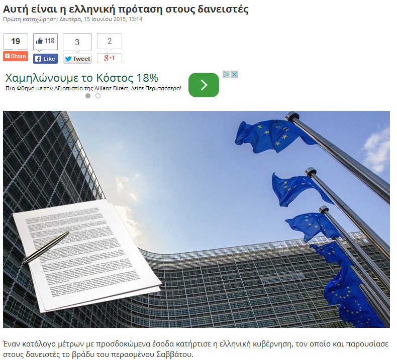 Έξτρα έσοδα της τάξεως των 680 εκατ. ευρώ για φέτος και 1,360 δισ. ευρώ για το 2016 φιλοδοξεί να βάλει στον κρατικό κορβανά η κυβέρνηση μέσω των αλλαγών στον ΦΠΑΗ κυβέρνηση φιλοδοξεί να βάλει στον κρατικό κορβανά έξτρα ποσά της τάξεως των 680 εκατ. ευρώ για φέτος και 1,360 δισ. ευρώ για το 2016. Με τις προτάσεις της ελληνικής πλευράς, προτείνονται τρεις συντελεστές ΦΠΑ: ο χαμηλός (6%, για φάρμακα, βιβλία και εισιτήρια θεάτρων), ο μεσαίος (13%, για εφημερίδες, περιοδικά, «βασικά και φρέσκα» τρόφιμα, τιμολόγια ενέργειας και νερού, ξενοδοχεία, εστιατόρια) και ο υψηλός (23%, για όλα τα υπόλοιπα προϊόντα και υπηρεσίες, συμπεριλαμβανομένου του επεξεργασμένου φαγητού). Σε μια προσπάθεια να αυξηθούν τα έσοδα, το Μέγαρο Μαξίμου προχώρησε σε σημαντική υποχώρηση, δίνοντας τη συγκατάθεσή του για την άνοδο του μεσαίου συντελεστή από το 11% στο 13%. Από τη μεριά τους, οι δανειστές ζητούν την επιβολή δύο ΦΠΑ: 23% για όλα σχεδόν τα προϊόντα και τις υπηρεσίες και 11% μόνο για φάρμακα, είδη διατροφής και υπηρεσίες διαμονής στα ξενοδοχεία. Απαραίτητη προϋπόθεση η τοποθέτηση των λογαριασμών ρεύματος στον υψηλό συντελεστή (κάτι το οποίο η Αθήνα απορρίπτει) και κατάργηση όλων των εξαιρέσεων και των εκπτώσεων, συμπεριλαμβανομένων και των μειώσεων κατά 30% στους συντελεστές για τα νησιά του Aιγαίου.