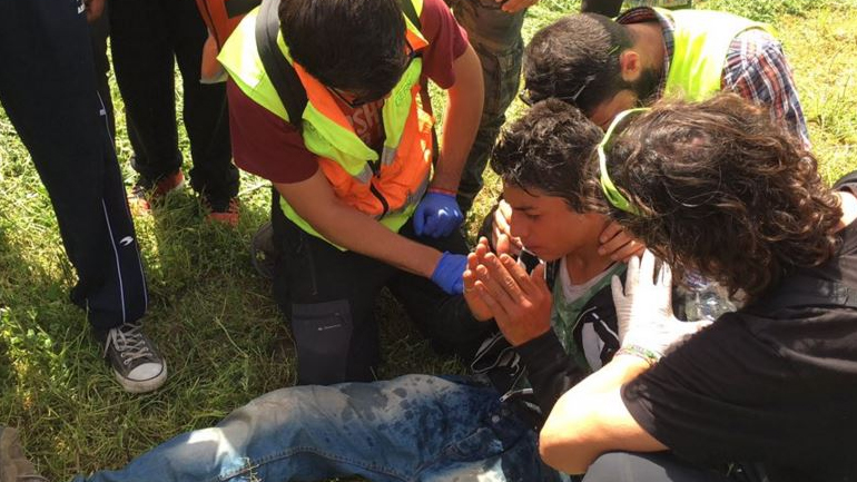 Αυτήν την ώρα περίπου 100 άτομα είναι συγκεντρωμένα δίπλα στον φράχτη και φωνάζουν συνθήματα για το άνοιγμα των συνόρων.