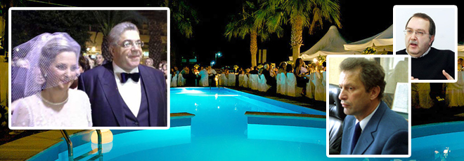 H ατμόσφαιρα ήταν ζεστή. Τα πηγαδάκια πολλά και έντονη η παρουσία ανώτατων αξιωματικών του στρατού, λόγω της ιδιότητας του γαμπρού. Μεταξύ αυτών και ο αρχηγός ΓΕΕΘΑ Μιχαήλ Κωσταράκος. Το παρών έδωσαν και εκπρόσωποι του επιχειρείν, καθότι κουμπάρος του ζεύγους ήταν ο Κώστας Χαΐτογλου – «ο βασιλιάς του χαλβά», όπως αποκαλείται ο διευθύνων σύμβουλος της γνωστής βιομηχανίας.