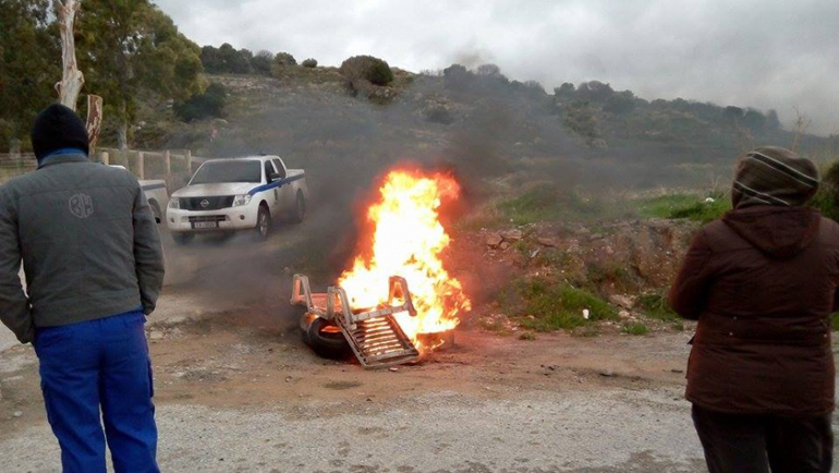 Τεταμένη ατμόσφαιρα επικρατεί από το πρωί στην Κω, καθώς κάτοικοι άναψαν φωτιές έξω από το στρατόπεδο όπου πραγματοποιούνται εργασίες για τη δημιουργία hot spot.