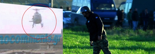 Σε κάποια κοντινά πλάνα του ελικοπτέρου διακρίνονται ακόμη και οι ένοπλοι που πυροβολούν τους φρουρούς.
