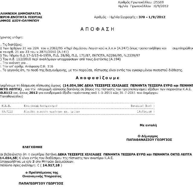 • Εκεί που δεν καταβάλλονται τα δεδουλευμένα έξοδα παραστάσεως πρώην αντιδημάρχων, δημοτικών συμβούλων, προέδρων δημοτικών επιχειρήσεων του πρώην Δήμου Ανατολικού Ολύμπου, γιατί «λεφτά δεν υπάρχουν»…