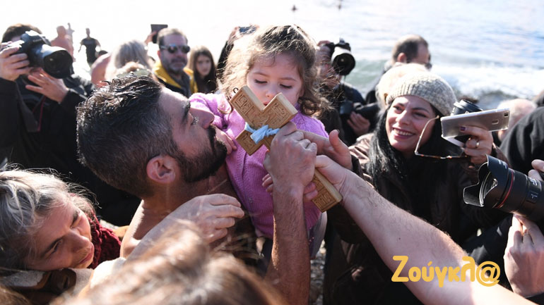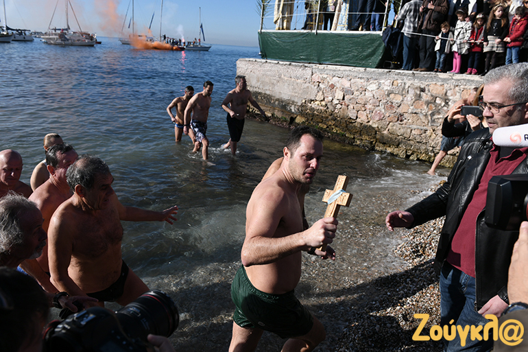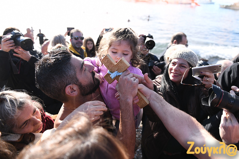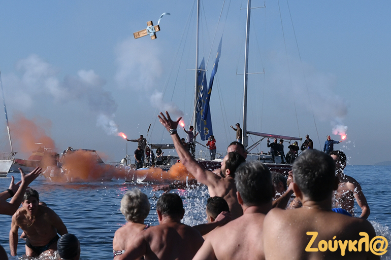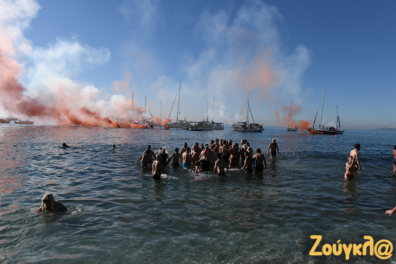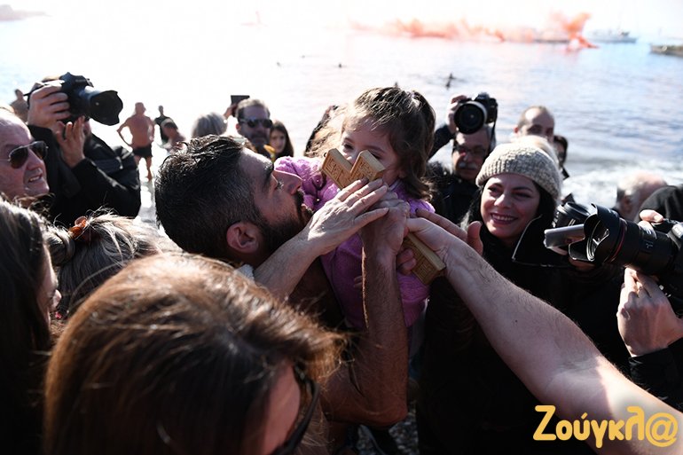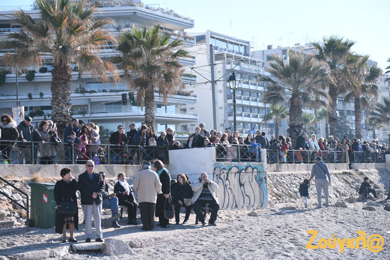 Με σύμμαχο τον καλό καιρό πλήθος κόσμου βρέθηκε στην παραλία του Παλαιού Φαλήρου για να παρακολουθήσει από κοντά τον Aγιασμό των υδάτων και την κατάδυση του Τιμίου Σταυρού στα νερά.