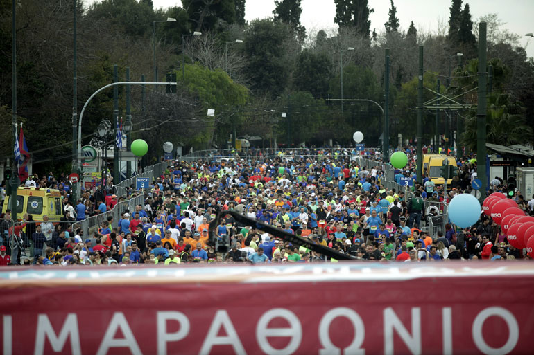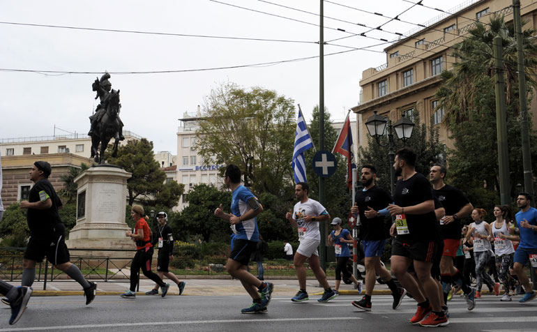 Πολλοί Αθηναίοι κατέκλυσαν το κέντρο της πόλης για να παρακολουθήσουν τους δρομείς καθώς ο καιρός ήταν με το μέρος τους.
