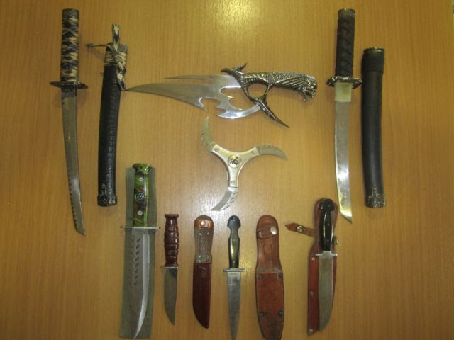 – Ένα ξύλινο ρόπαλο και έξι φυσίγγια πολεμικών όπλων, διαφόρων διαμετρημάτων.