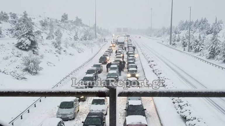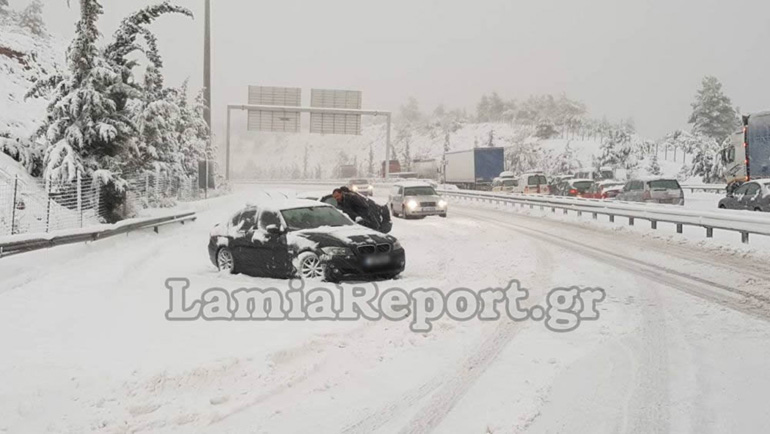 Για πολλές ώρες και από νωρίς το απόγευμα ο αυτοκινητόδρομος είχε κλείσει στο ρεύμα προς Λαμία, με ιδιαίτερα προβλήματα στο Κάστρο, το Μαρτίνο και την Τραγάνα, όπου δίπλωσαν νταλίκες και πλαγιολίσθησαν λεωφορεία.