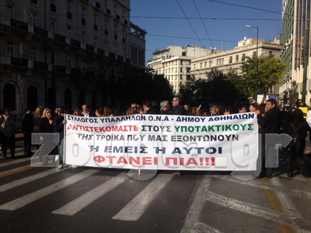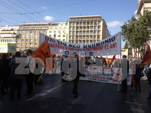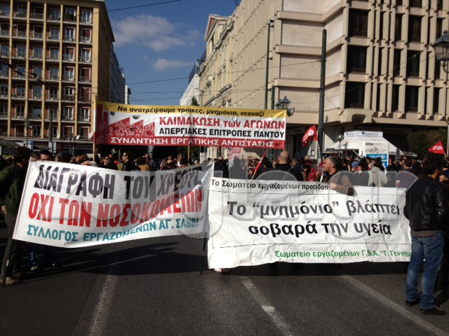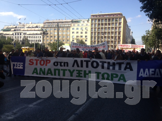 H ΓΣΕΕ και η ΑΔΕΔΥ κήρυξαν στάση εργασίας από τις 12.00 μ.μ. έως και τις 15.00 μ.μ. και συλλαλητήριο στις 13.00 στην πλ. Κλαυθμώνος. Περίπου 4.000 άτομα συγκεντρώθηκαν στην πλατεία ενώ περί τις 13.45 ξεκίνησε η πορεία τους προς το Σύνταγμα που ολοκληρώθηκε στις 14.09. Οι διαδηλωτές παρέμειναν στο σημείο για μία και πλέον ώρα διαδηλώνοντας ειρηνικά.