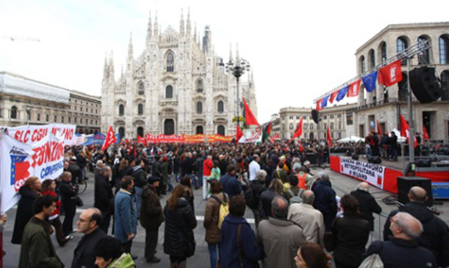 (Συγκέντρωση στην πλατεία Duomo του Mιλάνου)
