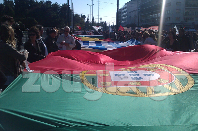 Ισπανοί, Πορτογάλοι, Έλληνες και όλοι οι λαοί του ευρωπαϊκού Νότου αλλά και του Βορρά, εργαζόμενοι, άνεργοι, συνταξιούχοι, μαθητές, βγαίνουν σήμερα στους δρόμους, ανταποκρινόμενοι στο πανευρωπαϊκό κάλεσμα για συλλαλητήριο αλληλεγγύης ενάντια στη λιτότητα.