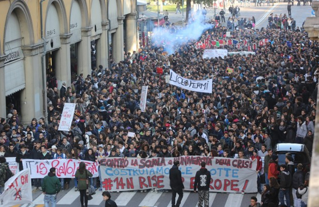 Σύμφωνα με πληροφορίες, επεισόδια σημειώθηκαν έξω από την τράπεζα του Μιλάνου, όπου διαδηλωτές έσπασαν τις τζαμαρίες του κτηρίου. Στη Ρώμη, σφοδρές συγκρούσεις σημειώθηκαν ανάμεσα σε μαθητές και αστυνομικούς, με τους πρώτους να πετούν πέτρες και τους δεύτερους να κάνουν εκτεταμμένη χρήση χημικών.