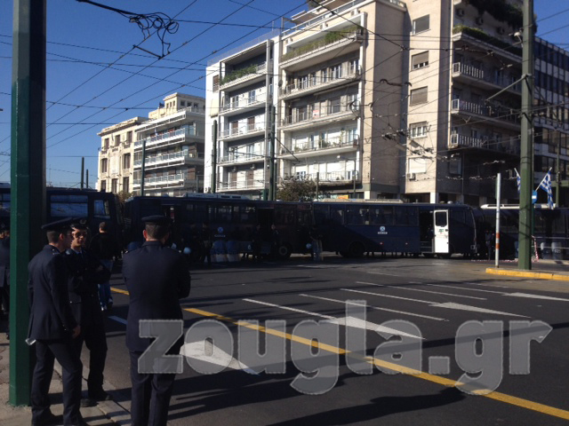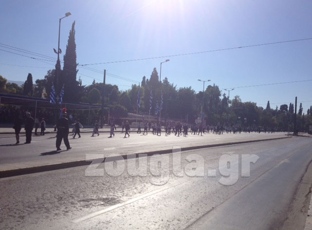 Κάτω από δρακόντεια μέτρα ασφαλείας πραγματοποιήθηκε η μαθητική παρέλαση στο κέντρο της Αθήνας, με περισσότερους από 500 αστυνομικούς επί ποδός για την αποφυγή τυχόν επεισοδίων.