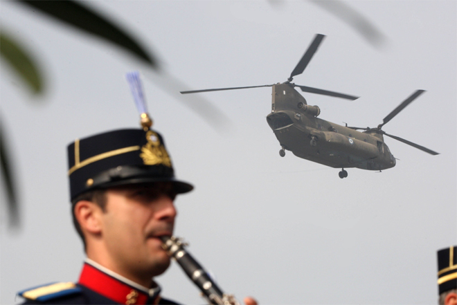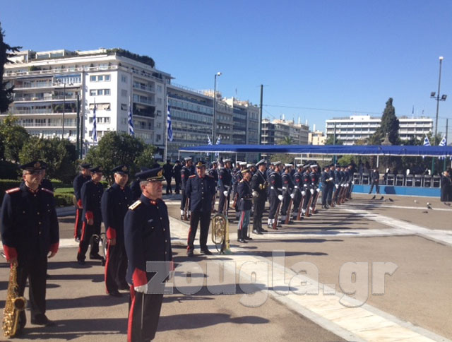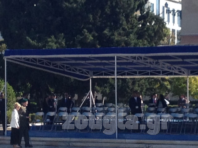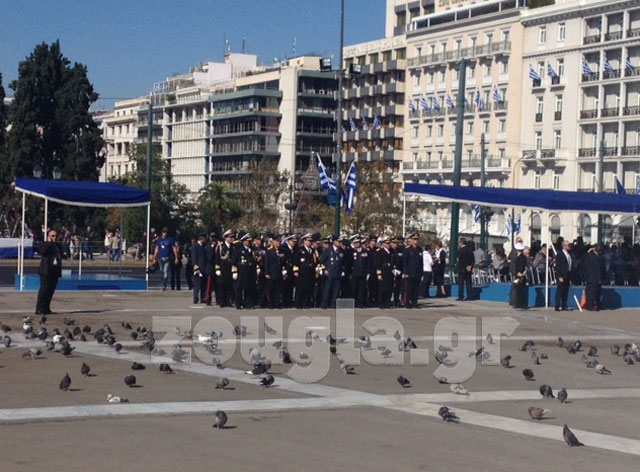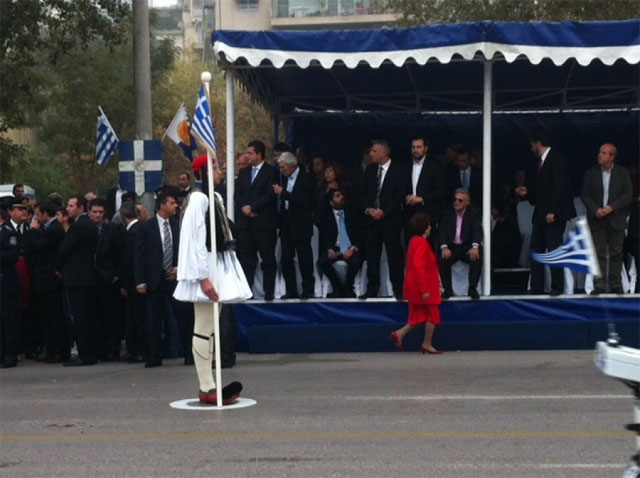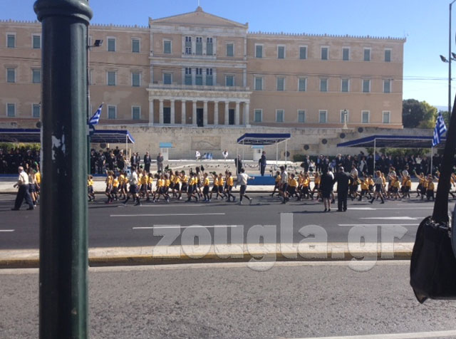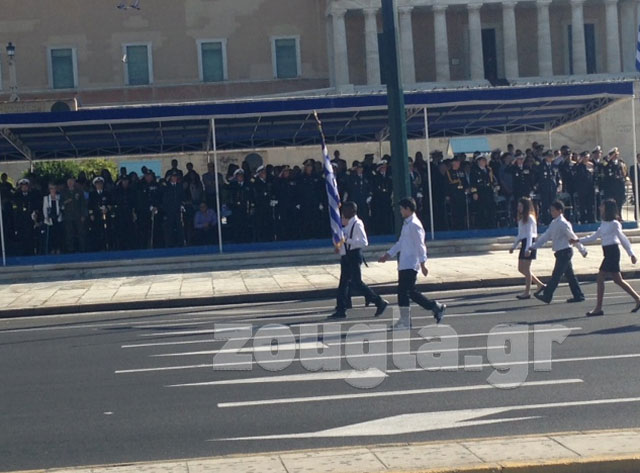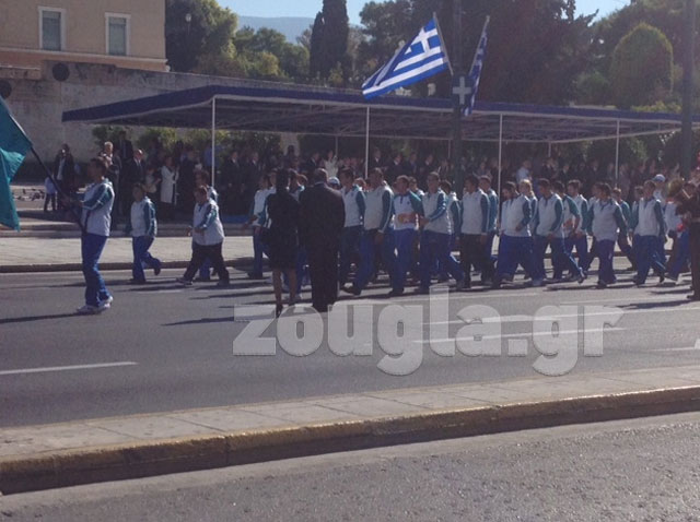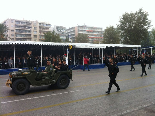 (Στην παρέλαση και ο βουλευτής της Χρυσής Αυγής Αντώνης Γρέγος, ο οποίος δεν ανέβηκε στην εξέδρα των επισήμων)