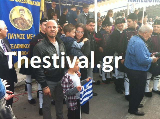 Δίπλα στην εξέδρα των επισήμων βρέθηκε ο βουλευτής της Χρυσής Αυγής, Αντώνης Γρέγος. Όπως το είχε προαναγγείλει, ο βουλευτής δεν ανέβηκε στην εξέδρα. Προτίμησε να σταθεί, με την οικογένειά του, κάτω απ’ αυτή, ωστόσο σε σημείο όπου η παρουσία του να είναι εμφανής προς τους δημοσιογράφους, για να στείλει το… μήνυμα που επιθυμούσε.