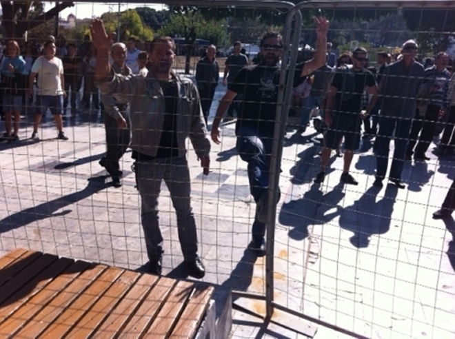 «Η θρασυδειλία τους φάνηκε και με τη σημερινή παρουσία στο πεζοδρόμιο. Αν ο βουλευτής της Χρυσής Αυγής ήθελε να εφαρμόσει το νόμο, ας ερχόταν στην εξέδρα, να βλέπαμε τί θα γινόταν».
