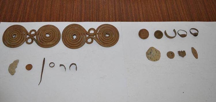 Σε αστυνομικές έρευνες που ακολούθησαν στα σπίτια τους σε περιοχή της Πέλλας, βρέθηκαν και κατασχέθηκαν συνολικά 179 νομίσματα και 17 κτερίσματα (κοσμήματα), τα οποία χρονολογούνται από την ελληνιστική και ρωμαϊκή περίοδο, και θα αποσταλούν στην Εφορεία Αρχαιοτήτων Πέλλας.