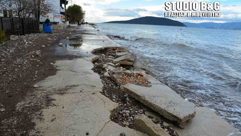 Σοβαρές ζημιές προκάλεσε η κακοκαιρία στο παραλιακό μέτωπο των χωριών του Δήμου Ναυπλιέων.