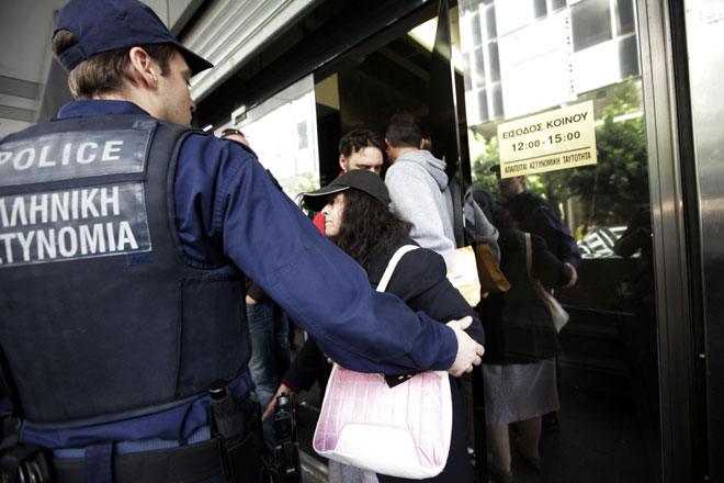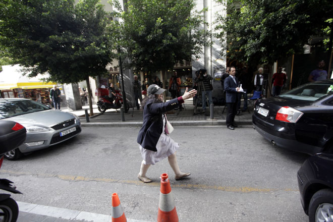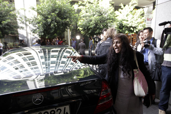 Λίγο μετά το περιστατικό εμφανίστηκε και η Ελένη Λουκά, η οποία έφθασε μέχρι την είσοδο του Υπουργείου Οικονομικών φωνάζοντας συνθήματα κατά της τρόικας.