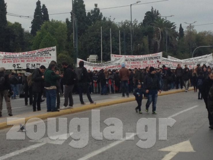 Η προσυγκέντρωση έγινε νωρίτερα στα Προπύλαια και αυτή την ώρα οι φοιτητές κατευθύνονται προς το Σύνταγμα.