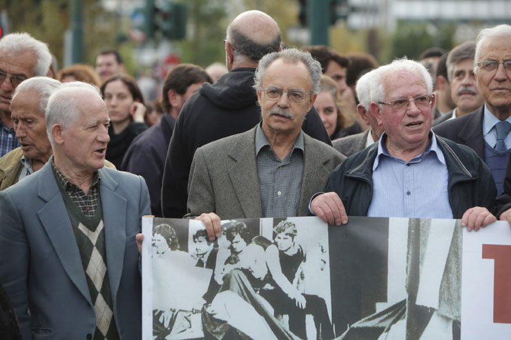 Της πορείας ηγήθηκε, όπως κάθε χρόνο, η αιματοβαμμένη σημαία της εξέγερσης, την οποία μετέφεραν μέλη της νεολαίας του ΠΑΣΟΚ. Η κεφαλή της έφτασε στην αμερικανική πρεσβεία λίγο πριν από τις 17.00 μ.μ. Οι φοιτητές έψαλαν τον εθνικό ύμνο πάνω από τη σημαία και στη συνέχεια προσπάθησαν να θυροκολλήσουν ψήφισμα στην πρεσβεία, αλλά οι αστυνομικές δυνάμεις δεν τους το επέτρεψαν.