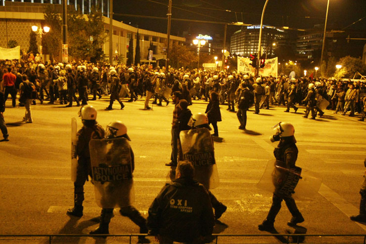 Στο μεταξύ, ένταση επικράτησε περίπου στις 19.00 στην περιοχή του Χίλτον και στο ύψος του Πύργου Αθηνών με διαδηλωτές να πετούν αντικείμενα προς του αστυνομικούς κι εκείνοι να απαντούν με εκτενή χρήση χημικών και χειροβομβίδων κρότου λάμψης. Η ένταση εκτονώθηκε σε πολύ σύντομο χρονικό διάστημα.