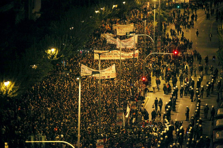 και στη συμβολή Σταδίου και Γεωργίου Σταύρου. Σύμφωνα με τις πρώτες εκτιμήσεις ο μεγαλύτερος όγκος των διαδηλωτών του ΠΑΜΕ (σ.σ. συνολικά περίπου 10.000-15.000) συγκεντρώθηκε από το ύψος της οδού Κολοκοτρώνη έως τα Προπύλαια.