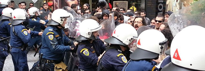 Ένταση επικράτησε το μεσημέρι στην καρδιά της Αθήνας, όπου τα καταστήματα παραμένουν ανοιχτά λόγω του εορταστικού ωραρίου.