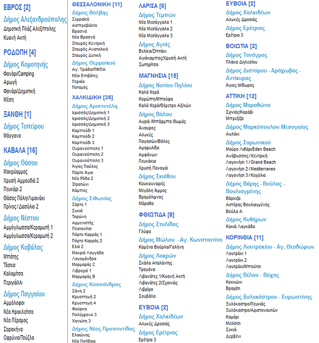 Οι παραλίες που διαθέτουν γαλάζιες σημαίες σύμφωνα με την Ελληνική Εταιρεία Προστασίας της Φύσης