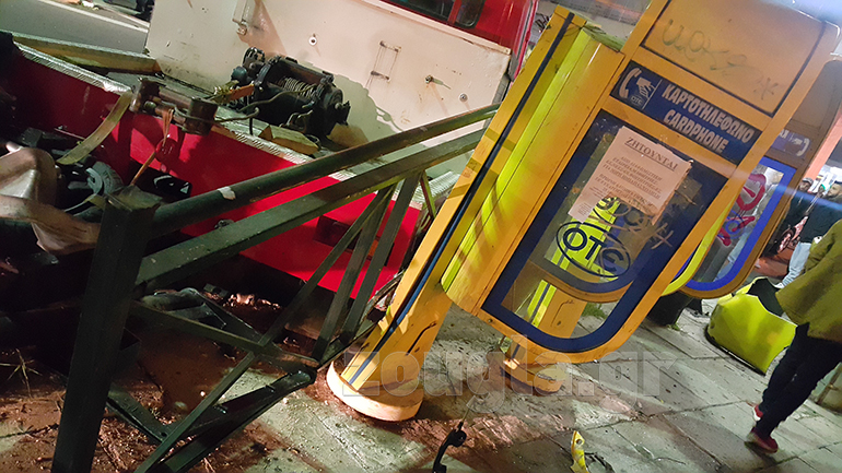 Η διαδρομή του αυτή τη φορά ήταν μικρότερη, αφού βγήκε στον κόμβο της Δεκελείας, και εκεί, με τα αστυνομικά οχήματα να τον καταδιώκουν συγκρούστηκε (στη συμβολή με την οδό Χαλκίδος) με ένα ταξί και τελικά έριξε τον γερανό σε σταθμευμένα οχήματα…