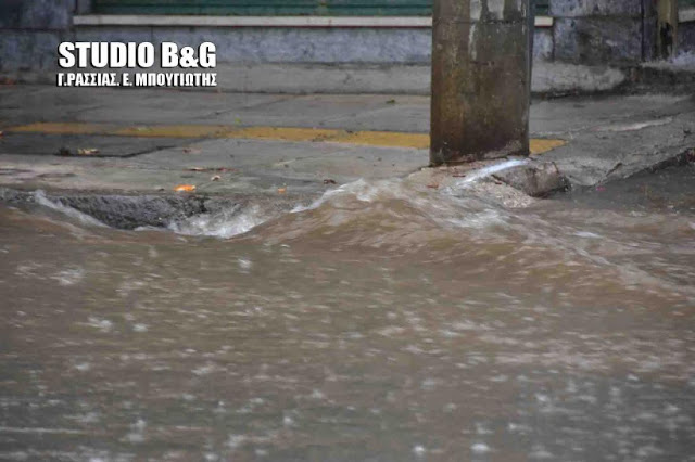 Η έντονη βροχόπτωση που σημειώθηκε κατά τη διάρκεια της νύχτας στην Αργολίδα προκάλεσε προβλήματα στην περιοχή, με πολλούς δρόμους να έχουν πλημμυρίσει.