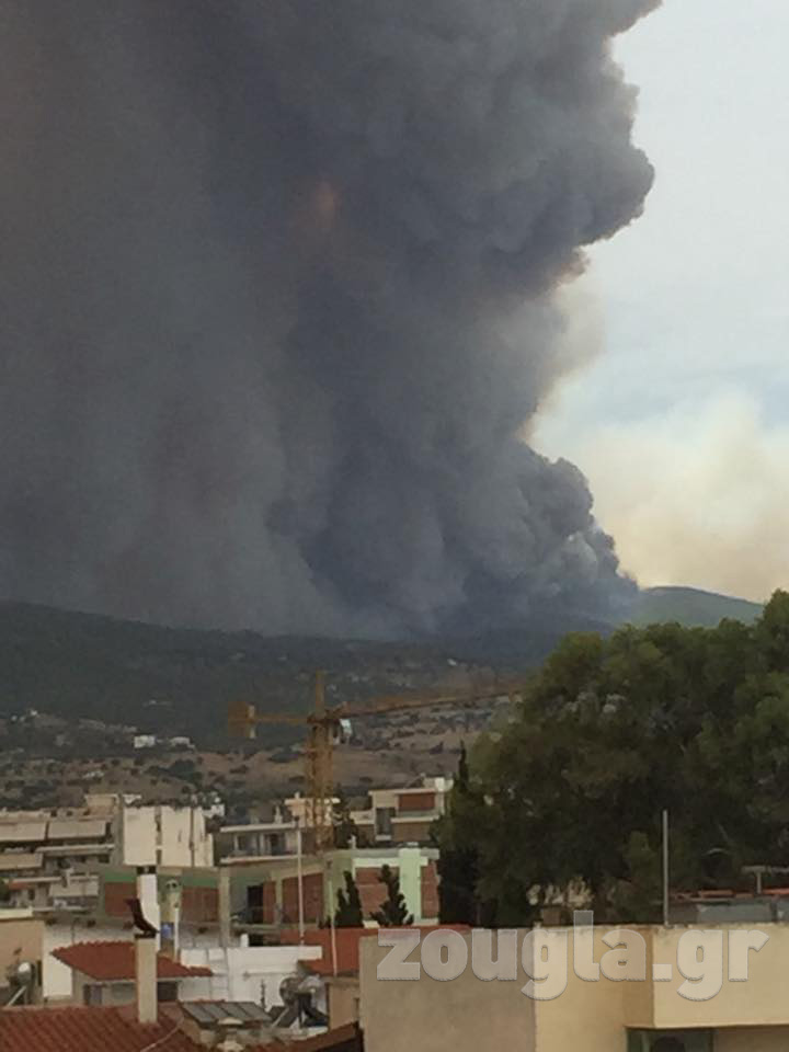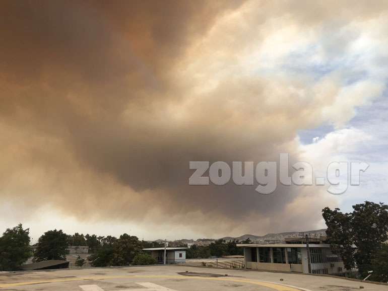 Οι καπνοί είναι τόσο πυκνοί, που φαίνονται ακόμα και από το κέντρο της Αθήνας.
