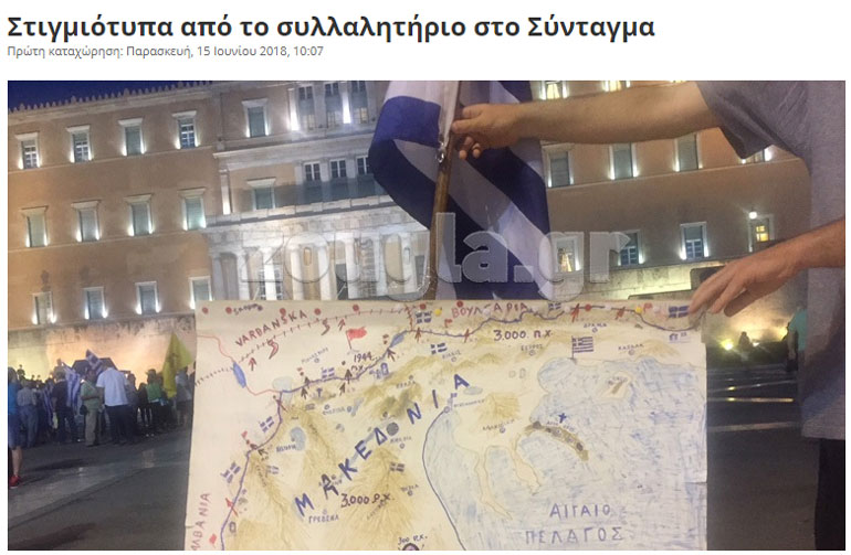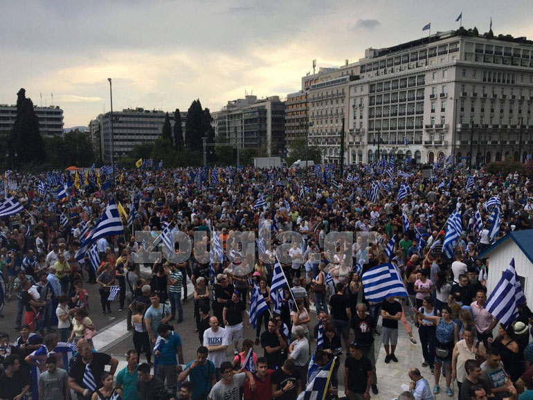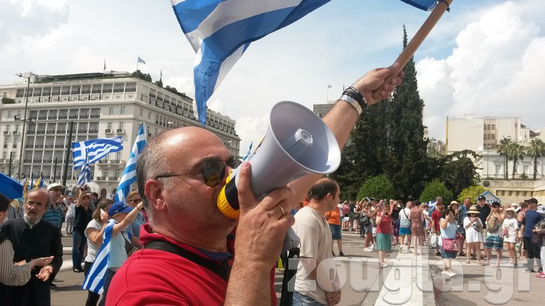 Συλλαλητήριο διαμαρτυρίας για τη συμφωνία Αθηνών – Σκοπίων για το ονοματολογικό πραγματοποιήθηκε στην πλατεία Συντάγματος από τις 16:00 το απόγευμα. Εκατοντάδες πολίτες, για δεύτερη συνεχόμενη ημέρα, αντέδρασαν στο όνομα «Βόρεια Μακεδονία» που συμφωνήθηκε μεταξύ Ζόραν Ζάεφ και Αλέξη Τσίπρα.