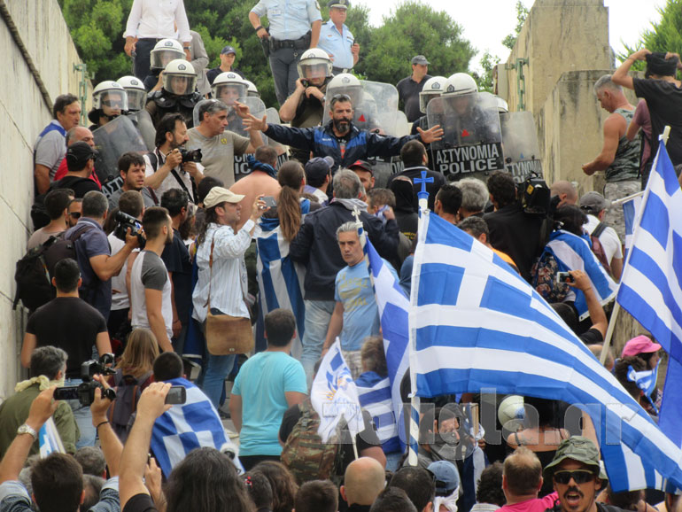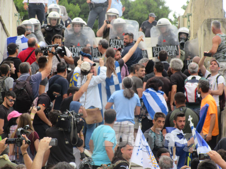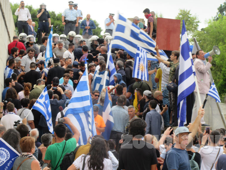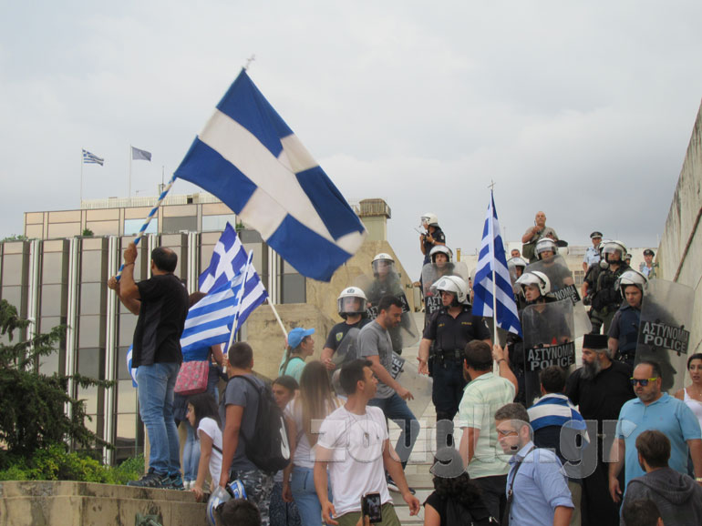 Αυτή τη στιγμή οι διαδηλωτές παραμένουν στην πλατεία Συντάγματος κρατώντας ελληνικές σημαίες και φωνάζοντας συνθήματα κατά της συμφωνίας για το ονοματολογικό.