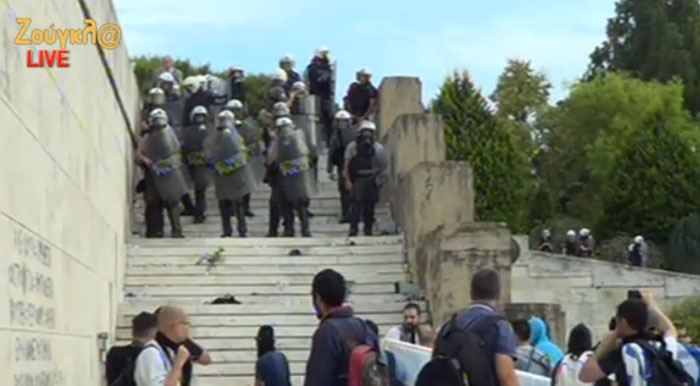 Λίγο μετά τις 19:00, ομάδα διαδηλωτών προσπάθησε να προσεγγίσει, από τη δεξιά πλευρά εισόδου, το κτίριο του Κοινοβουλίου, με τις αστυνομικές δυνάμεις να τους απωθούν με τη ρίψη δακρυγόνων. Από τα επεισόδια τραυματίστηκε ελαφρώς ένας διαδηλωτής.