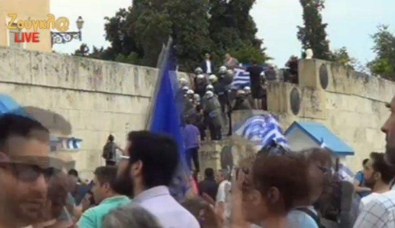 Λίγο μετά τις 21.15 σημειώθηκαν επεισόδια όταν το πλήθος που έχει συγκεντρωθεί μπροστά από τη Βουλή προσπάθησε να εισέλθει στο εσωτερικό του κτηρίου και απωθήθηκε από τους αστυνομικούς που έκαναν χρήση χημικών.