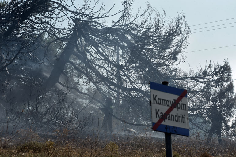 Τελικά το χειρότερο σενάριο επιβεβαιώθηκε, το μεσημέρι της Τρίτης, και το μέτωπο της φωτιάς στο Μετόχι Καπανδριτίου πέρασε το διάσελο και κατευθύνθηκε απειλητικά προς τη Μαλακάσα, το Πολυδένδρι και την Εθνική Οδό. Οι πυροσβεστικές δυνάμεις δεν κατάφεραν να συγκρατήσουν την πυρκαγιά μέσα στη χαράδρα στο Μετόχι Καπανδριτίου ενώ όπως φαίνεται τα εναέρια μέσα που επιχείρησαν δεν ήταν αρκετά για να αναχαιτίσουν τις φλόγες.