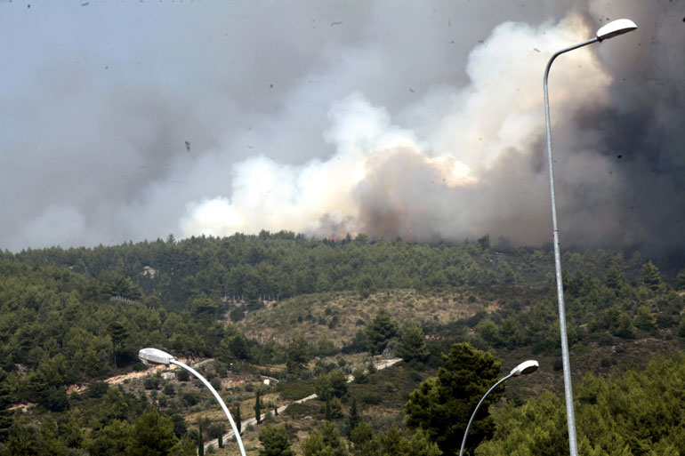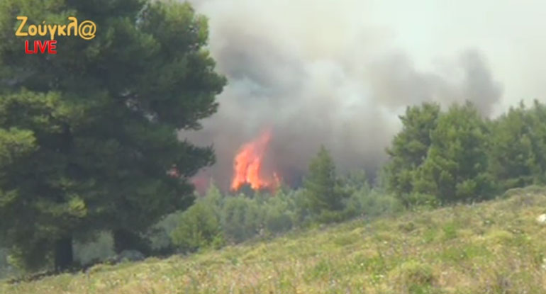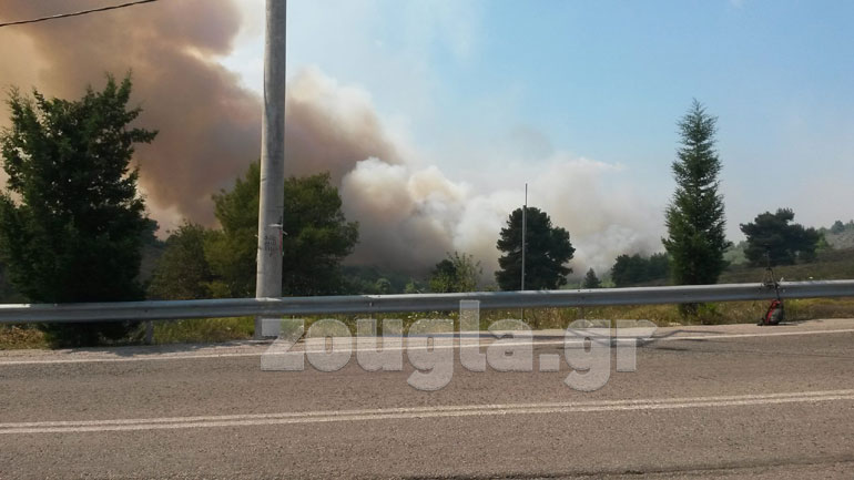 Βασικός στόχος των αρχών είναι να μην περάσουν οι φλόγες την Εθνική Οδό.