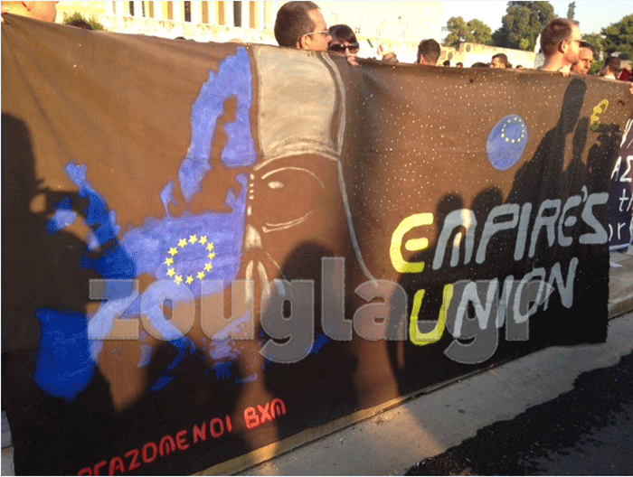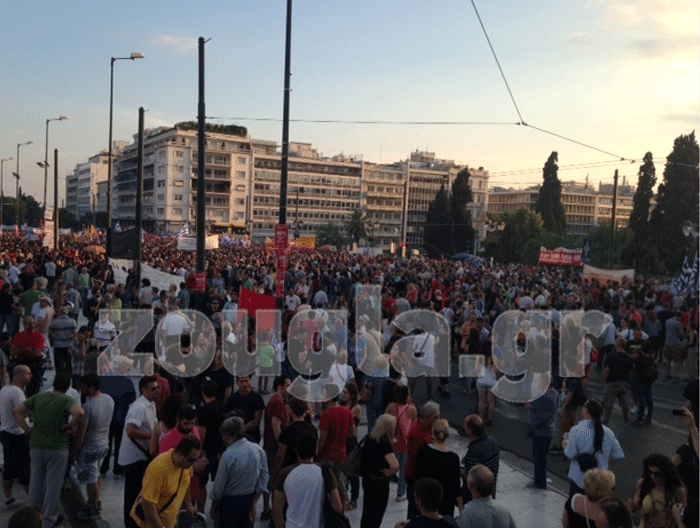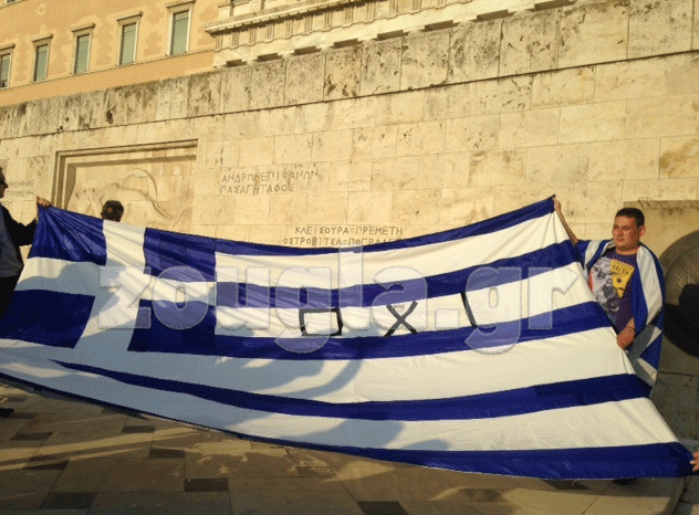 Συγκέντρωση στο Σύνταγμα διοργάνωσαν σήμερα το απόγευμα πολίτες, οι οποίοι τάχθηκαν υπέρ του «ΟΧΙ» στο δημοψήφισμα.