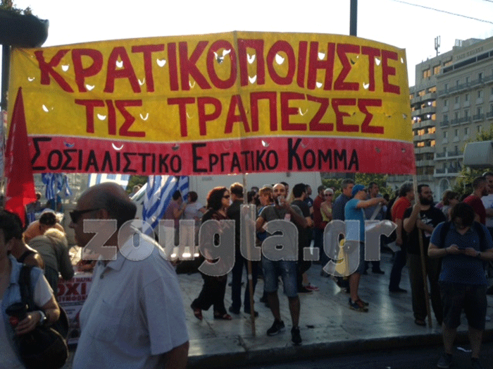 Στη συγκέντρωση συμμετείχαν και μέλη εξωκοινοβουλευτικών κομμάτων και πολιτικών κινήσεων (ΑΝΤΑΡΣΥΑ, ΕΠΑΜ, ΟΚΔΕ, Ξεκίνημα, κ.α.) προβάλλοντας θέσεις για ρήξη με τους θεσμούς και τους δανειστές και ενάντια στα μνημόνια και στη λιτότητα.