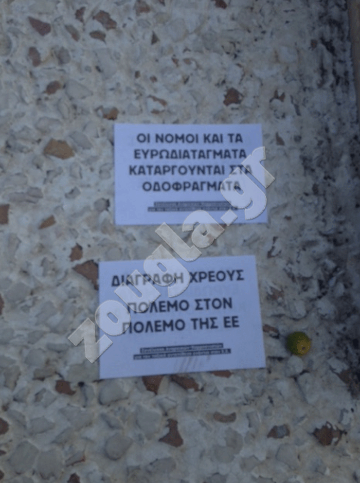 Οι διαδηλωτές μοίραζαν ενημερωτικό υλικό στους διερχόμενους και καλούν σε καταψήφιση της πρότασης των δανειστών στο δημοψήφισμα.
