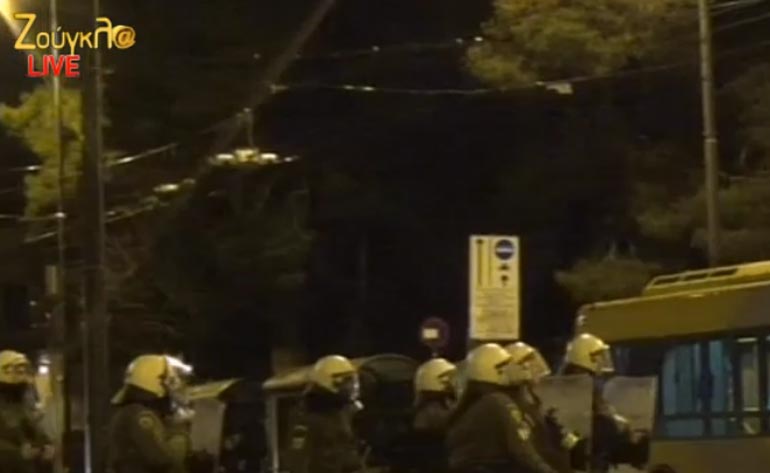 Νωρίτερα, η τροχαία απέκλεισε την οδό Σόλωνος: Η κυκλοφορία των οχημάτων διακόπηκε, καθώς από το εσωτερικό της Νομικής Σχολής οι καταληψίες εκτόξευαν στον δρόμο διάφορα αντικείμενα.