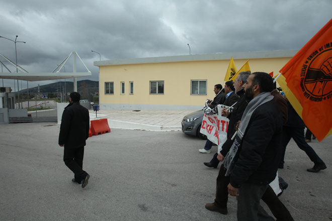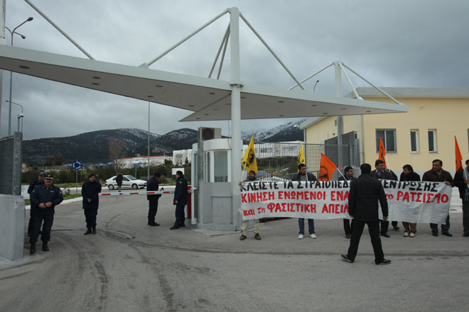 Αυτή την ώρα παραμένουν στην είσοδο των αστυνομικών σχολών, άτομα από την Κίνηση «Ενωμένοι Ενάντια στον Ρατσισμό και τη Φασιστική Απειλή», τα οποία κρατούν πανό και διαμαρτύρονται για τη λειτουργία του Κέντρου Κράτησης.