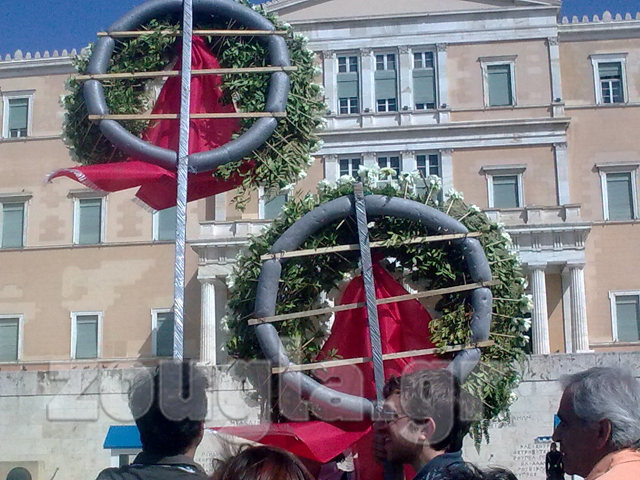 Συγκέντρωση πολιτών που βρέθηκαν στην πολιτική κηδεία του Δημήτρη Χριστούλα στο Α΄ Νεκροταφείο πραγματοποιήθηκε στην πλατεία Συντάγματος μετά το πέρας της τελετής.