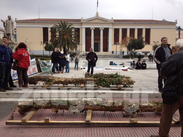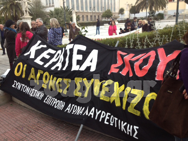 Στις 11.00 συγκεντρώθηκαν στα Προπύλαια και λόγω της κινητοποίησης η οδός Πανεπιστημίου παρέμεινε κλειστή.