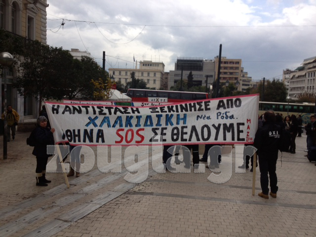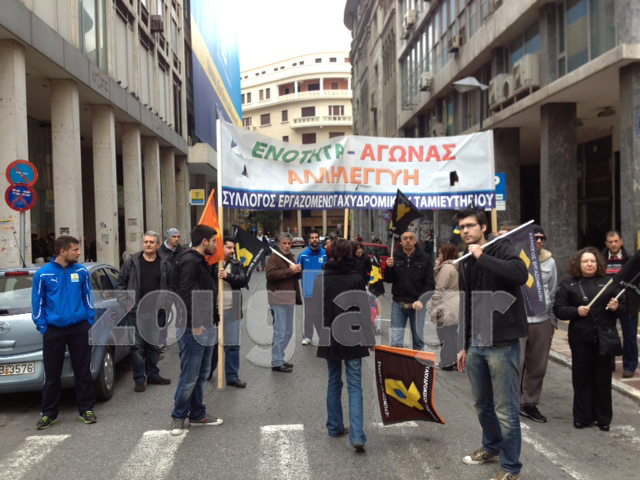 Οι εργαζόμενοι του Ταχυδρομικού Ταμιευτηρίου συμμετείχαν στη σημερινή συγκέντρωση και πορεία, προκειμένου να συμπαρασταθούν στις Επιτροπές Αγώνα της Χαλκιδικής.