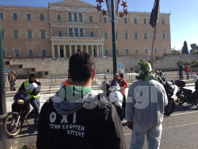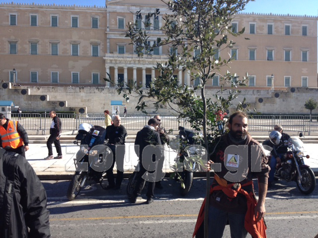Της πορείας προπορευόταν ομάδα «Αγανακτισμένων Μοτοσυκλετιστών» από την Αθήνα.